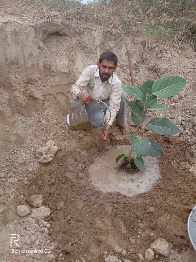 पौधारोपण में पर्यावरण मित्र देवेन्द्र सुरा के साथ आगे आयी रक्षक सेना