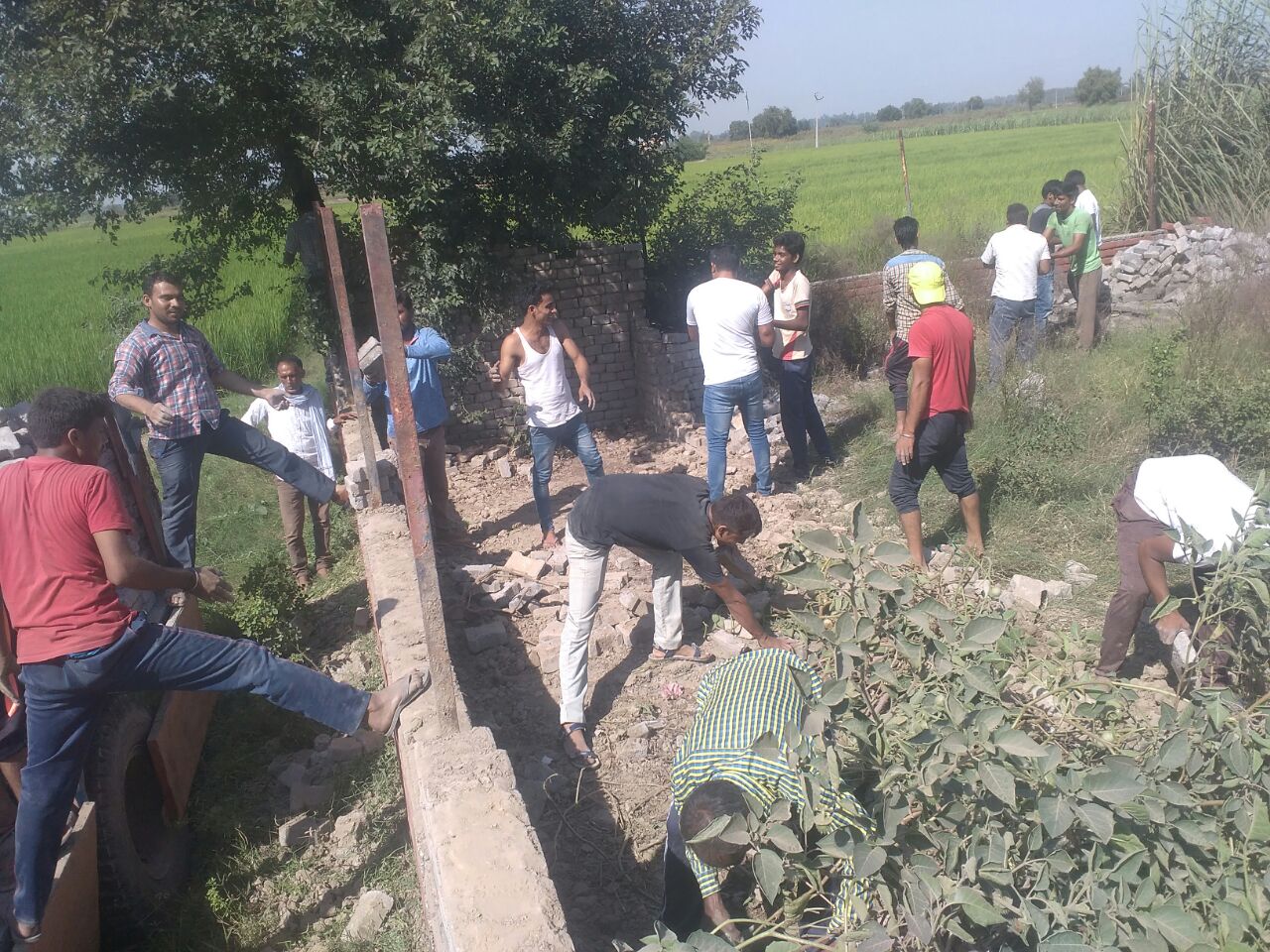 गौ से दरिंदगी का पता चलते ही शेवली पहुंचे रक्षक सेना से मनजीत तिहाड़ा और गौ सेवक