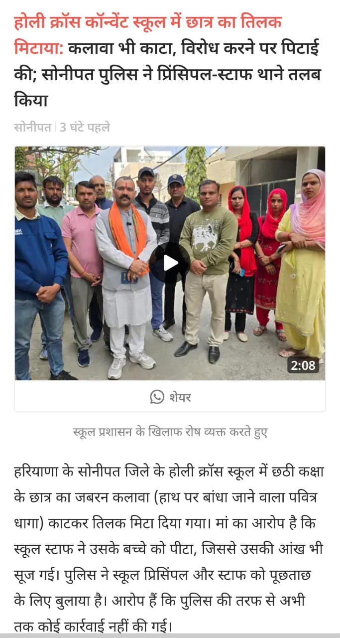 सोनीपत के होली क्रॉस में सहन नहीं होगा स्कुल जेहाद रक्षक सेना ने विभिन्न हिन्दू संगठनों के साथ मिल कर रोष प्रदर्शन