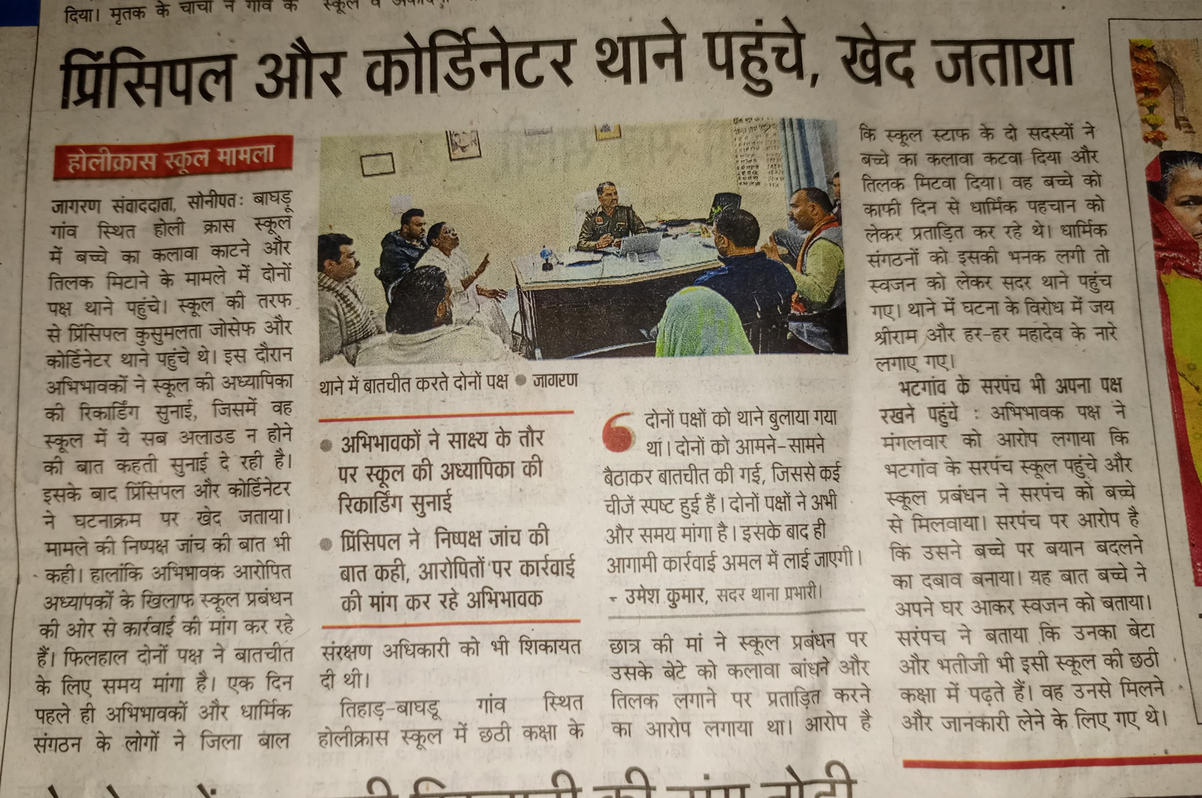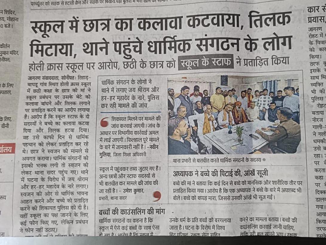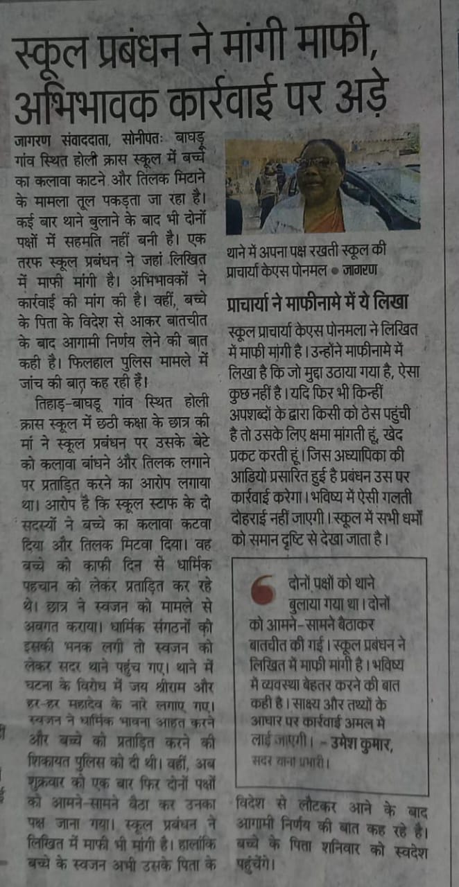 हाॅलीक्रॉस स्कूल की प्राचार्य को माननी पड़ी गलती, हिन्दुओं की हुयी जीत