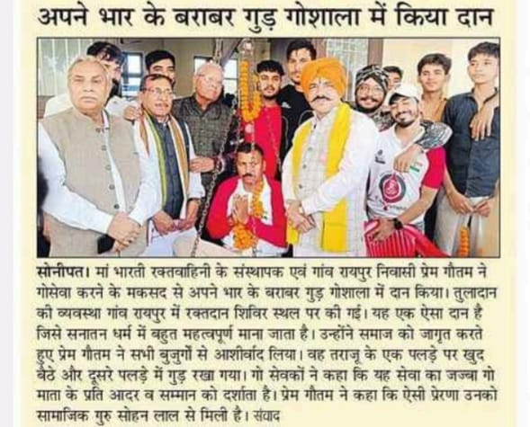गौ सेवकों ने किया रक्तदान मनजीत तिहाड़ा भी रहे मौजूद