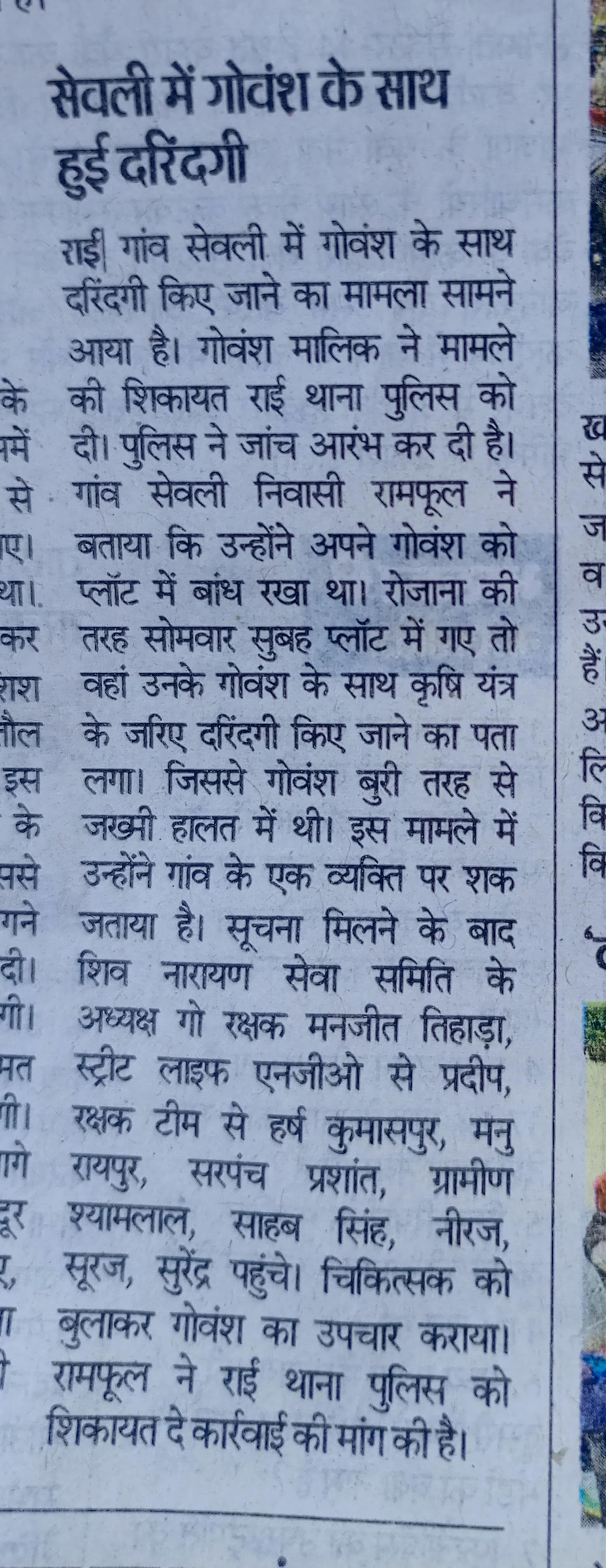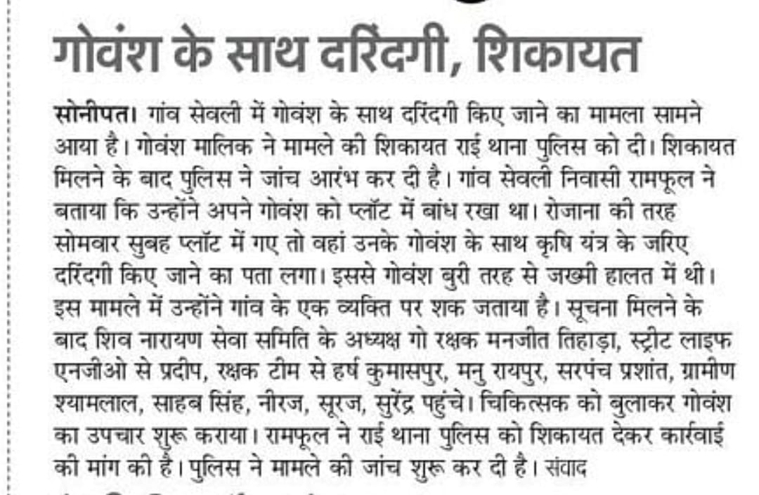 गौ वंश की पीड़ा को समझा मनजीत तिहाड़ा l आरोपी ने की दरिंदगी