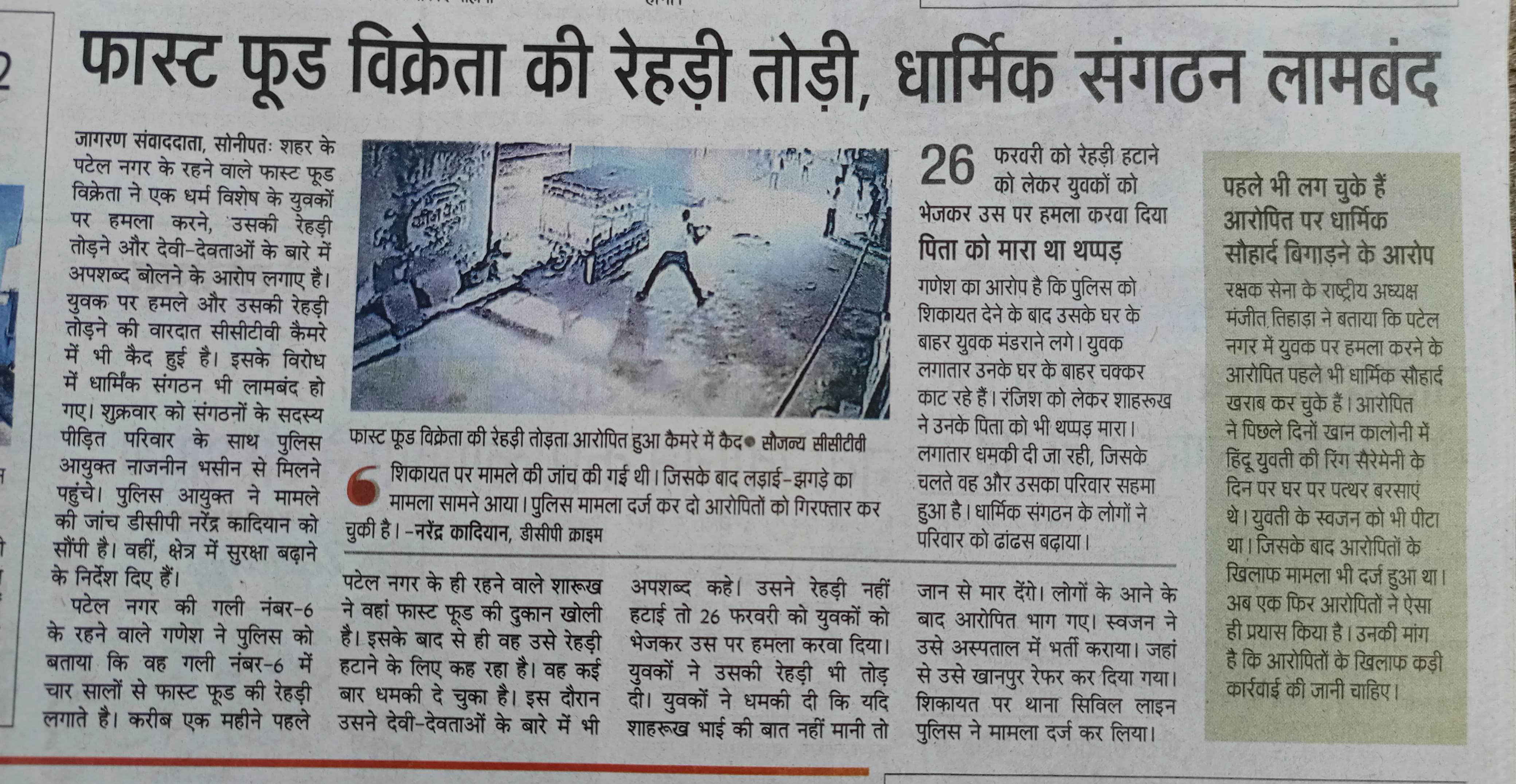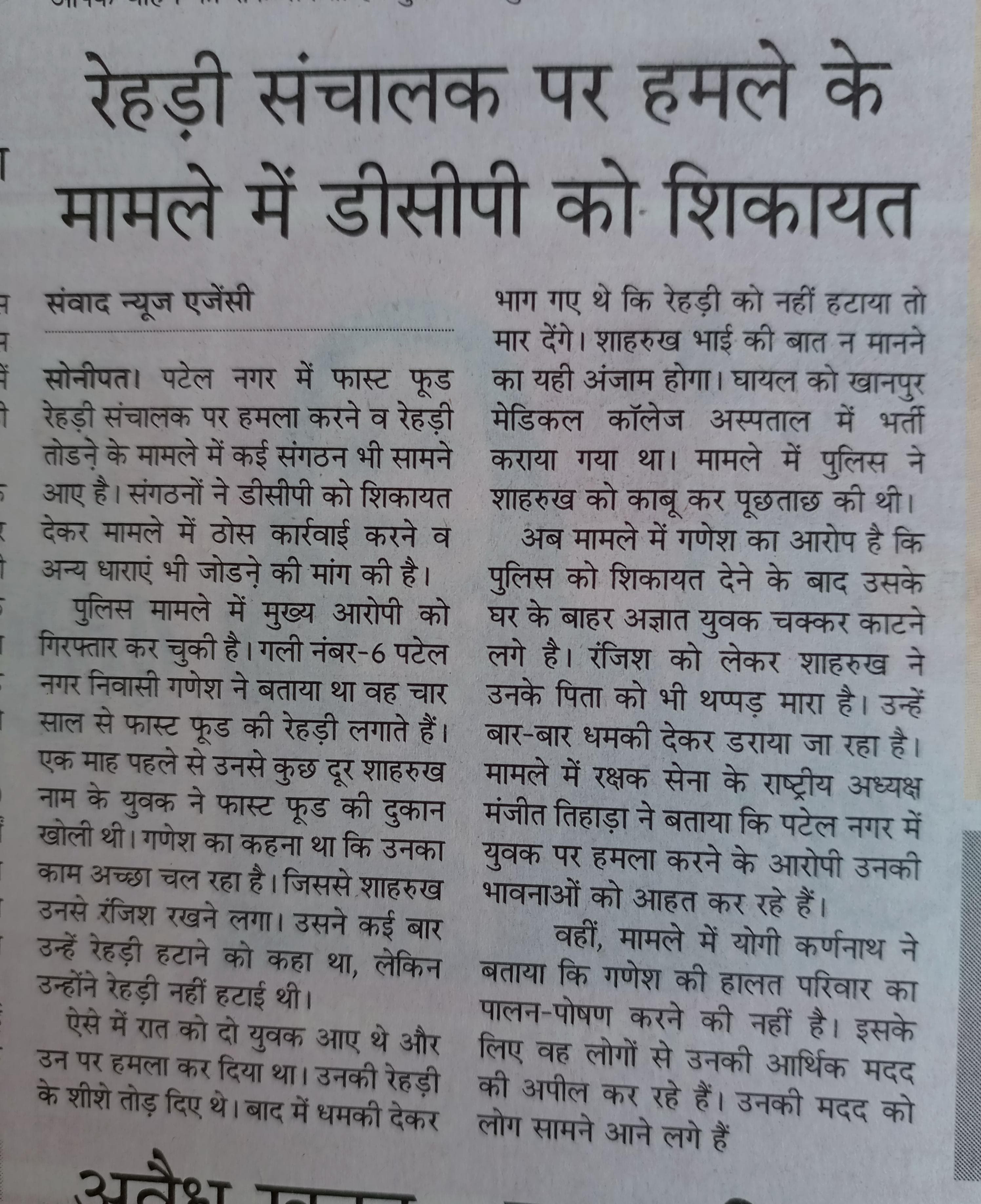 3. हिन्दू रेहड़ी संचालक के साथ खड़ी रक्षक सेना सदस्यों के साथ आवाज उठाई मनजीत तिहाड़ा ने