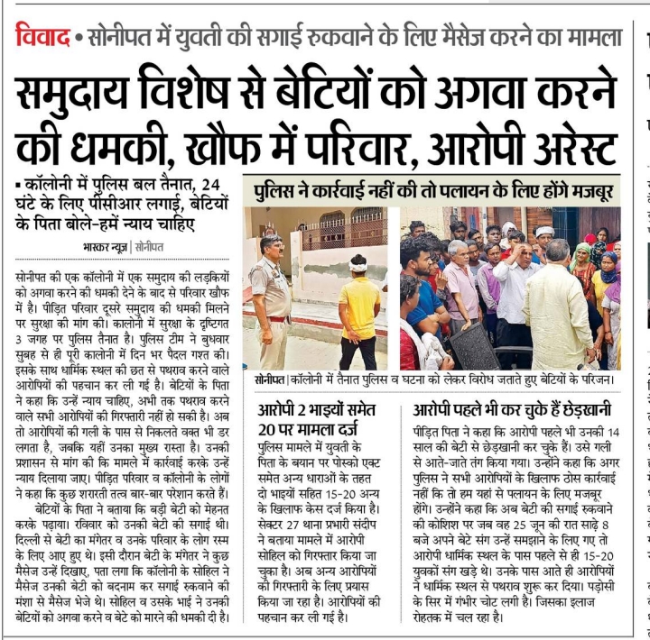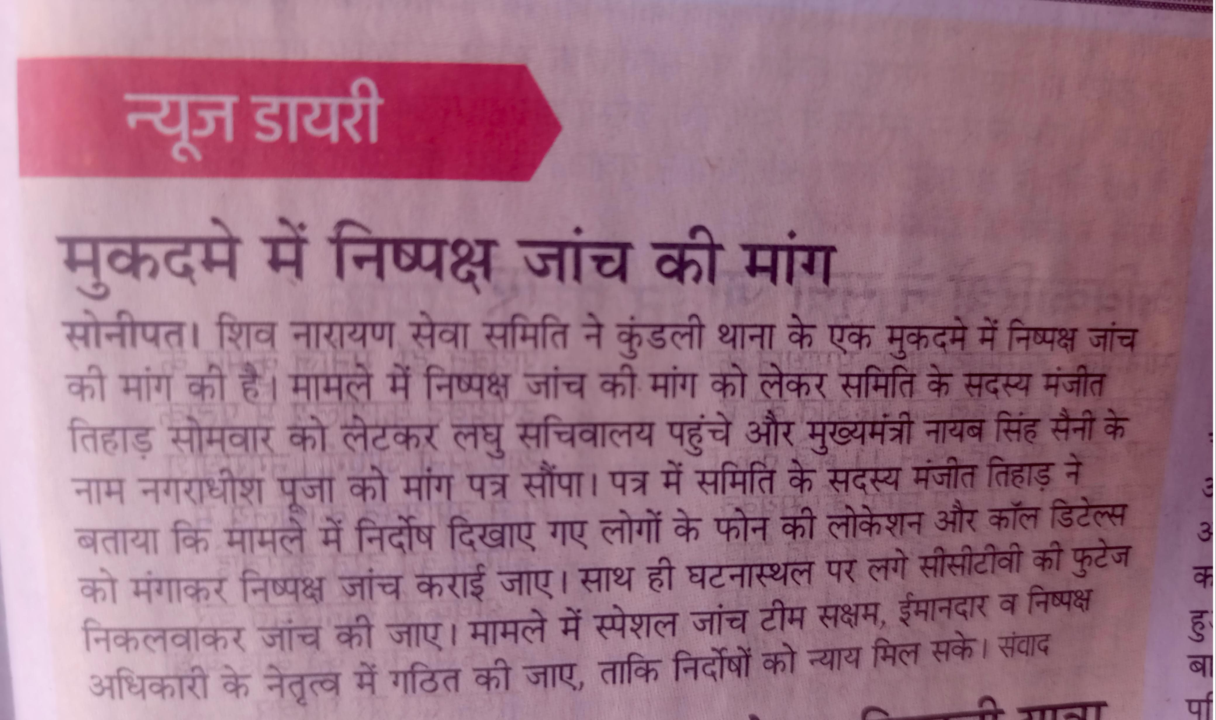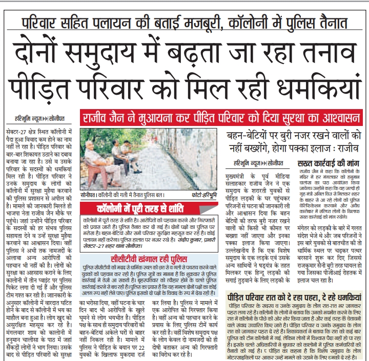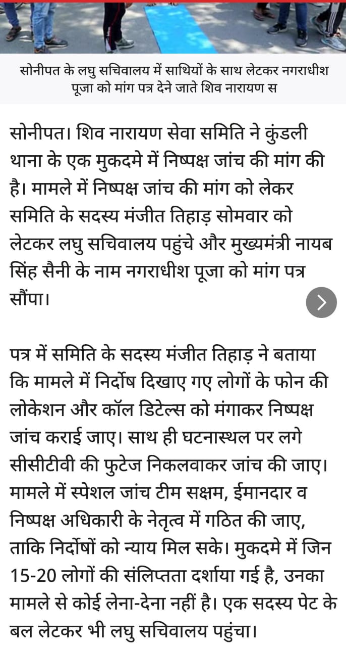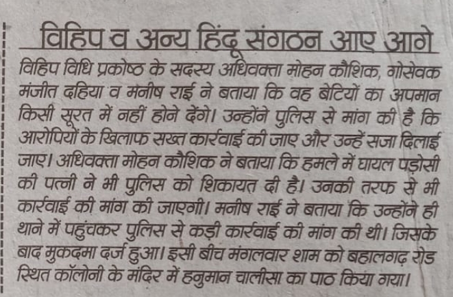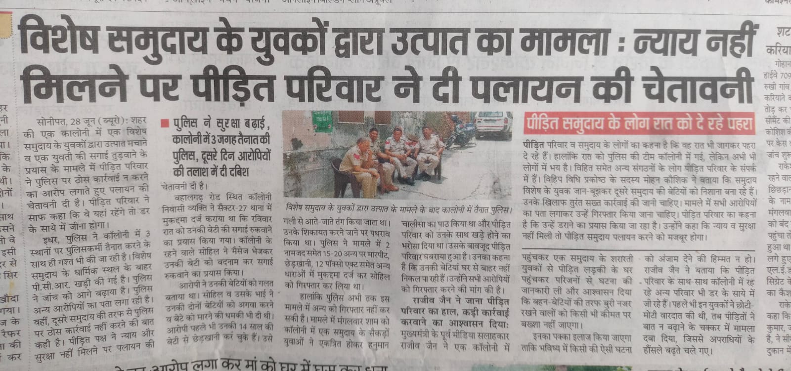 पीड़ित परिवार को न्याय दिलाने के लिए आगे आए मनजीत तिहाड़ा और समस्त सोनीपत हिन्दू समाज