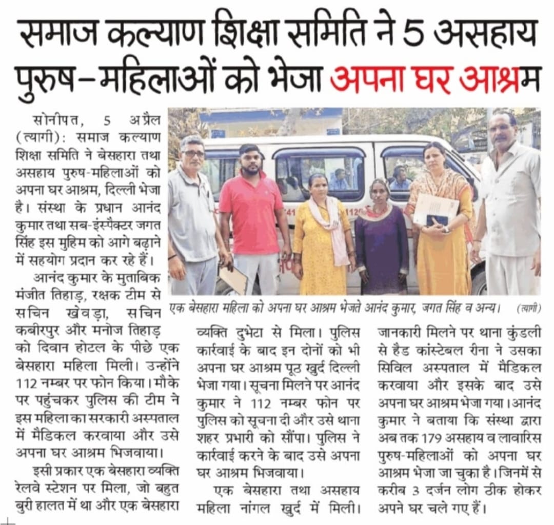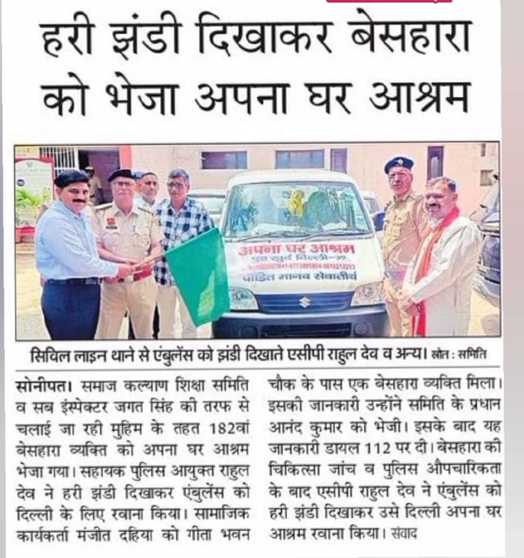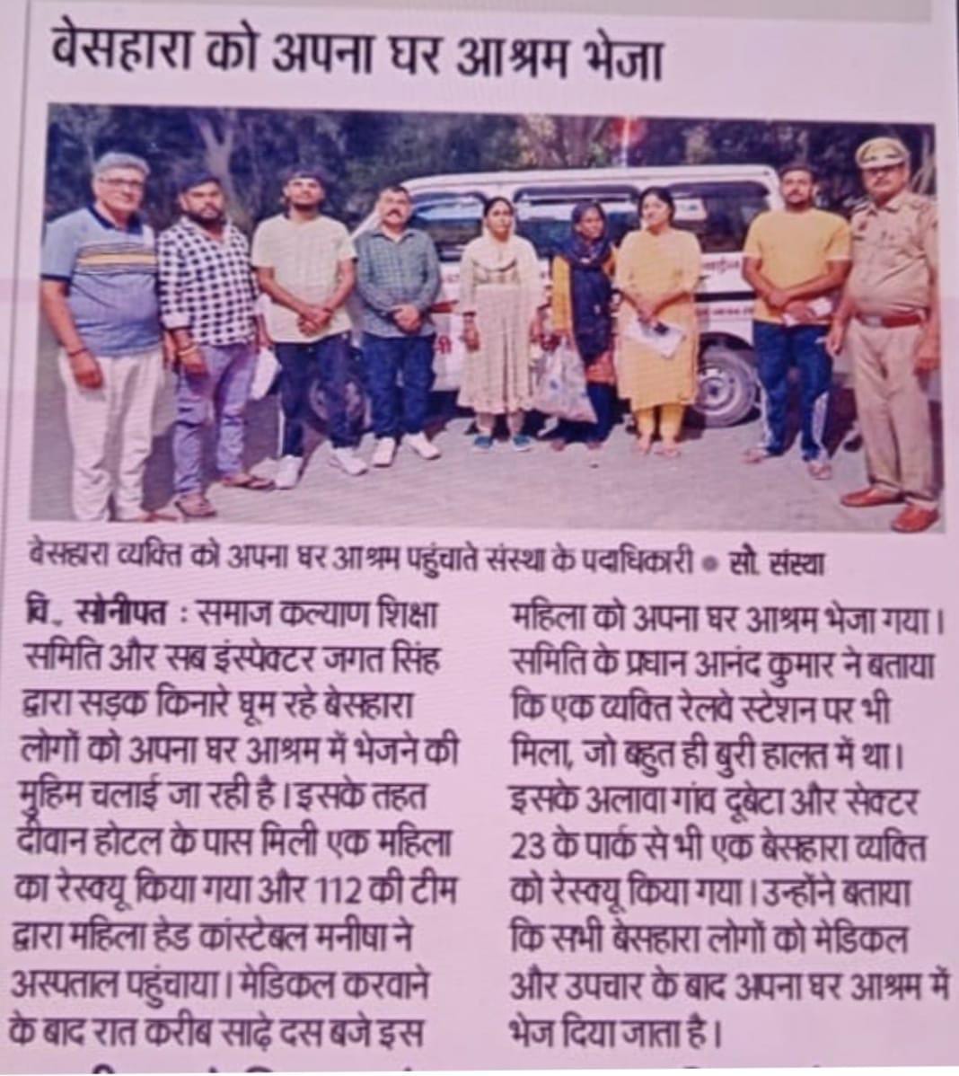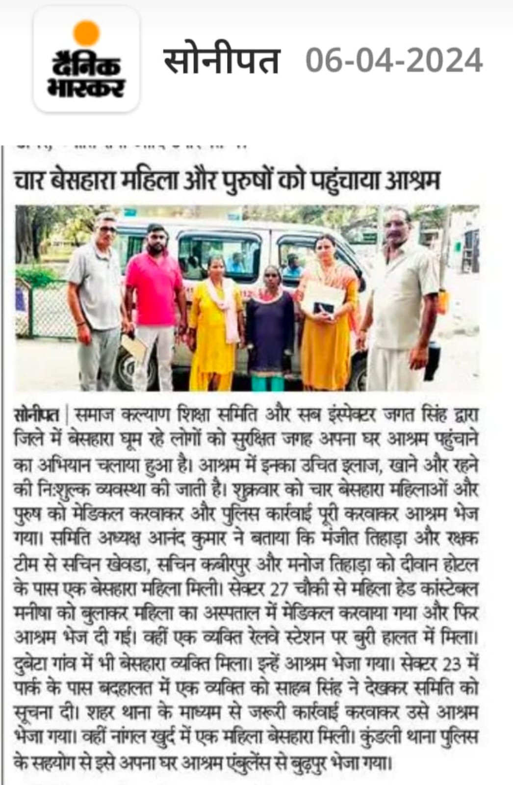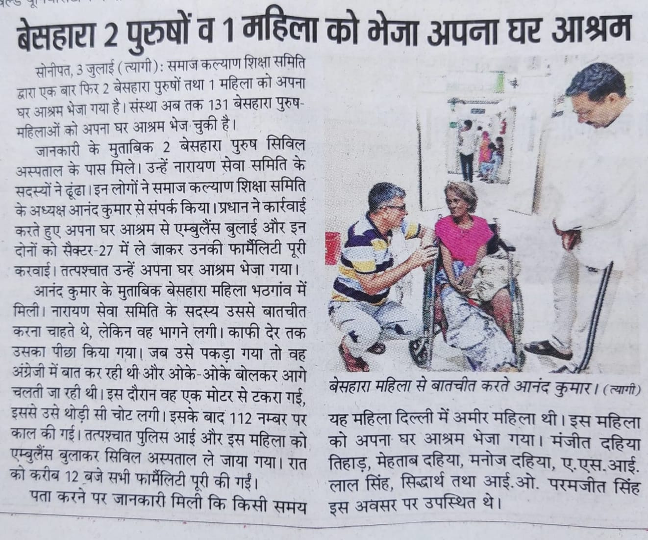 मनजीत तिहाड़ा ने समाज कल्याण शिक्षा समिति के सहयोग से बेसहारा महिला प्रभुओ को भिजवाया अपना घर आश्रम