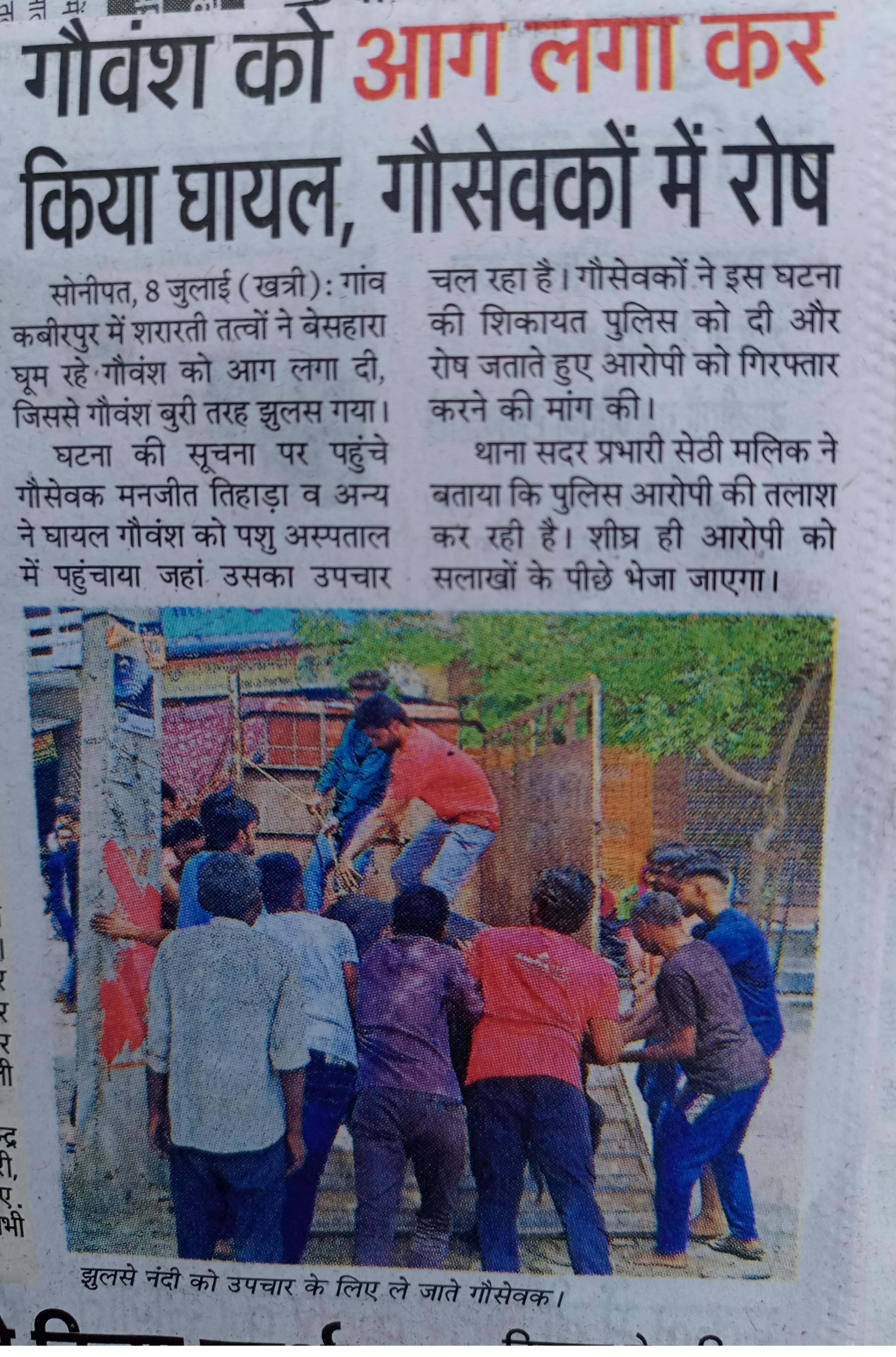 कबीरपुर में गौ-वंश पर पेट्रोल डालने के मामले में शिकायत दी मनजीत तिहाड़ा ने