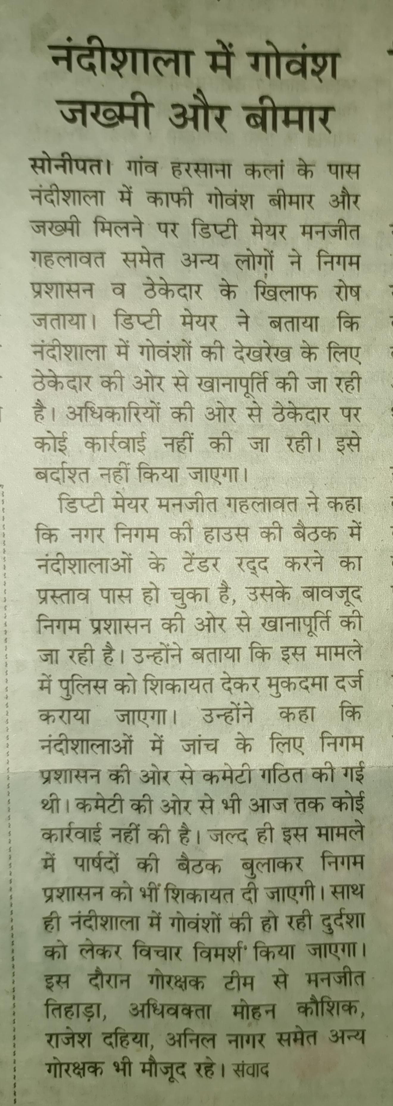 कुंडली थाना गौ सेवकों पर झूठे मुकदमे मामले में आगे आए मनजीत तिहाड़ा और गौ सेवक