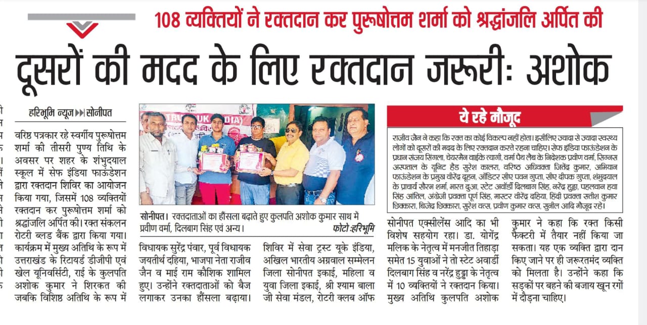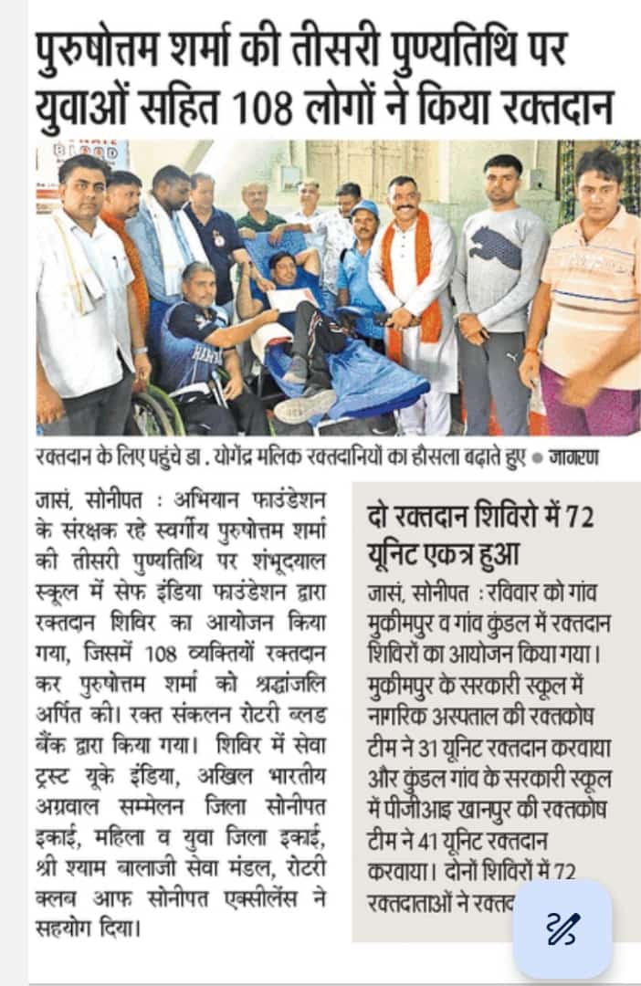 मनजीत तिहाड़ा ने शिव नारायण सेवा समिति के माध्यम से किया रक्तदान शिविर में सहयोग