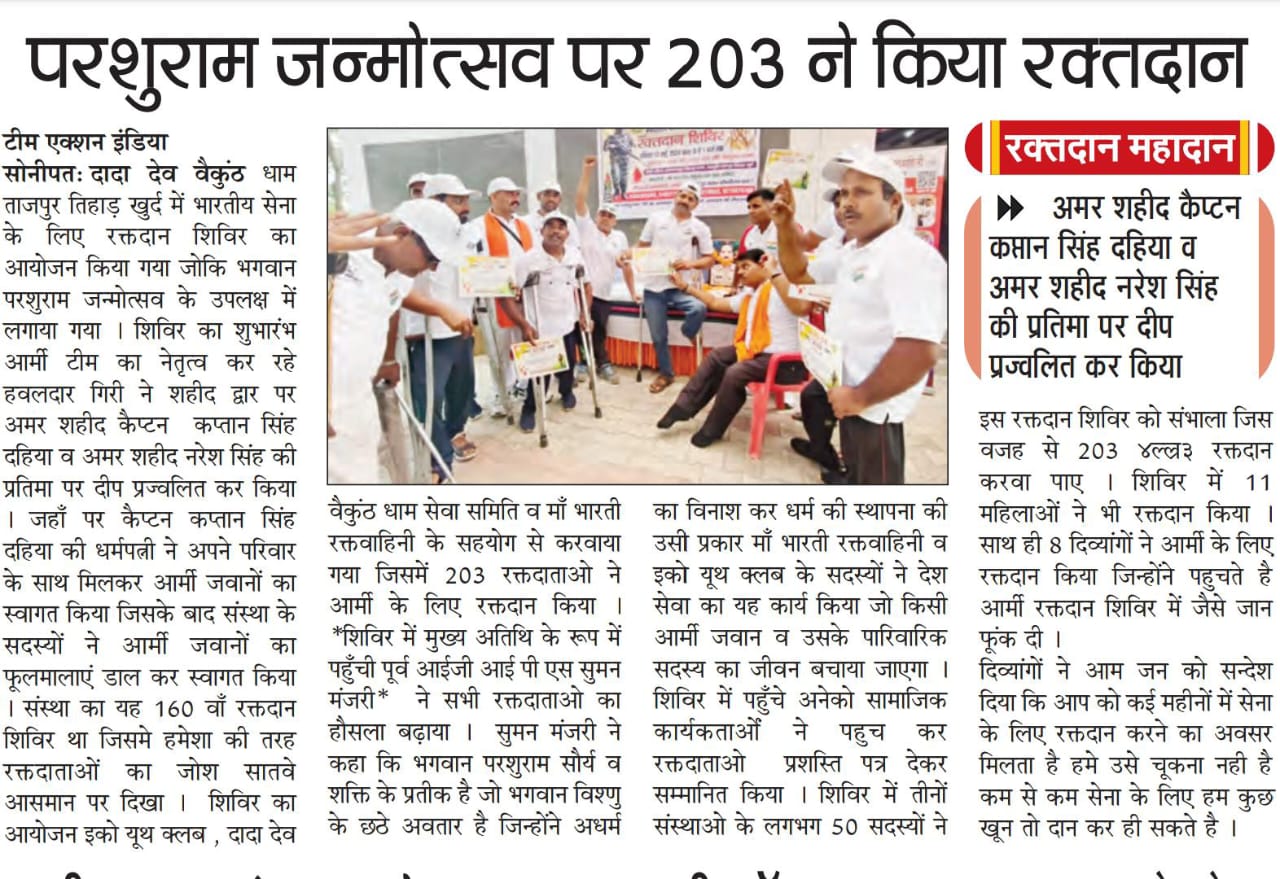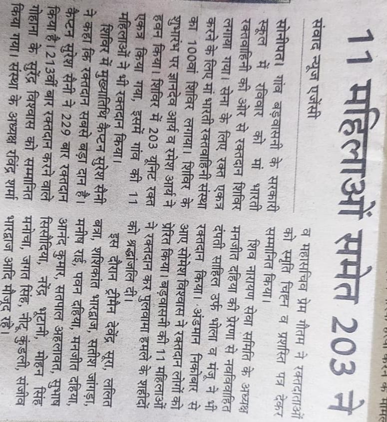 मनजीत तिहाडा ने शिव नारायण समिति के दायित्व का निर्वहन करते हुए स्वयं रक्तदान करके नवदंपति साहिल और मंजू का कराया रक्तदान