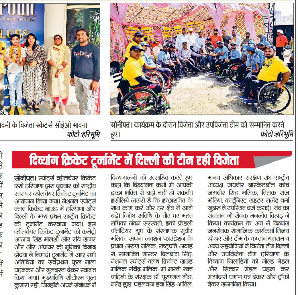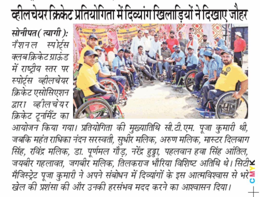 गौ सेवक मनजीत तिहाड़ा ने व्हीलचेयर क्रिकेट एशोसिएशन के मैच में किया मंच संचालक और बढ़ाया सभी का हौसला