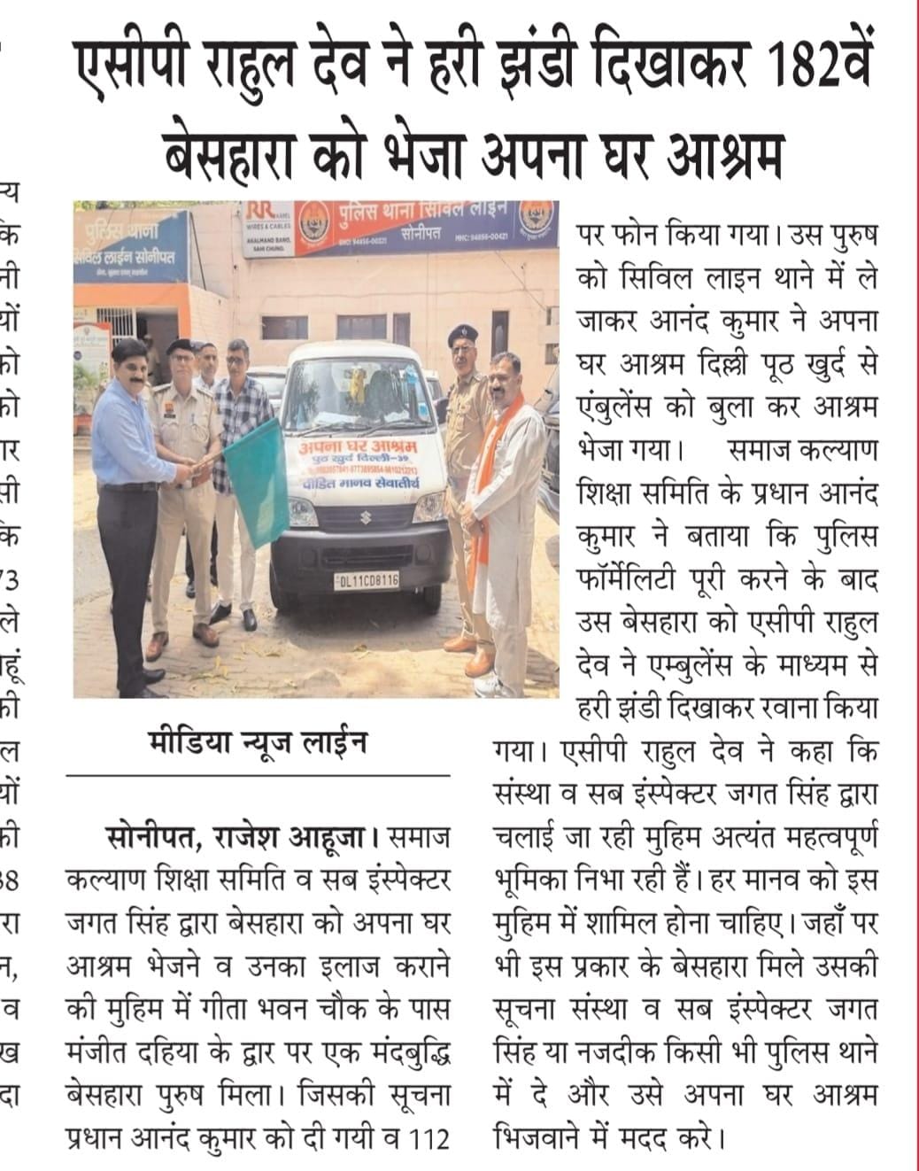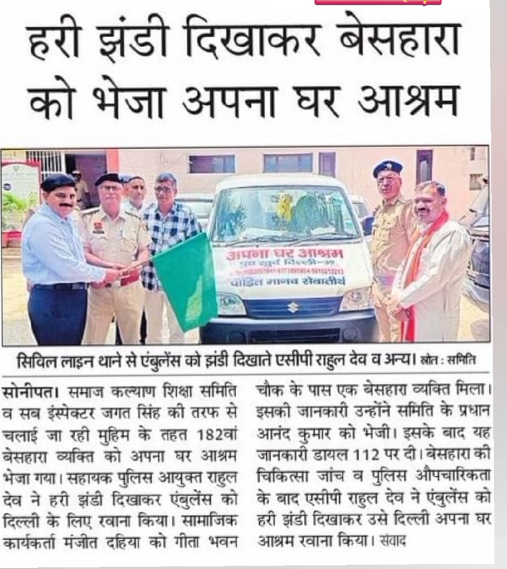 बेसहारा को अपना घर आश्रम के भिजवा कर सेवा कर्म निभाया मनजीत तिहाड़ा ने