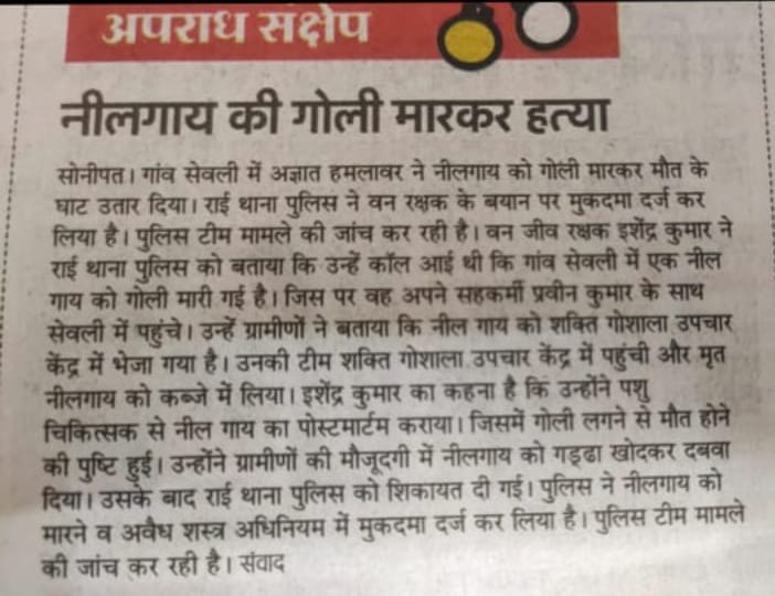 नीलगाय को मारने के मामले में मनजीत तिहाड़ा ने राई थाने में पहुंच की बेजुबानो के लिए न्याय की मांग