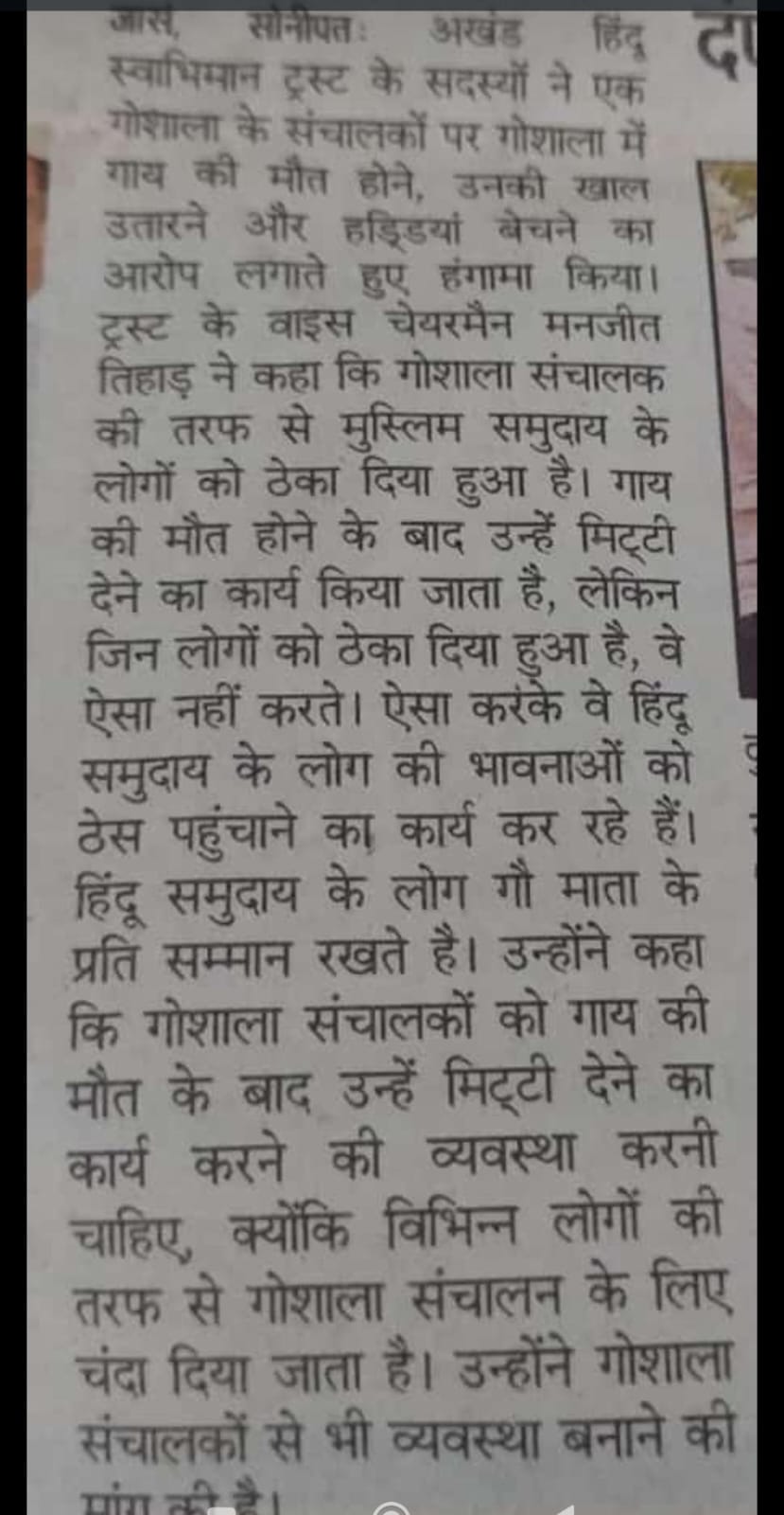 कबीरपुर गौ वंश को न्याय दिलाने के लिए आगे आए मनजीत तिहाड़ा