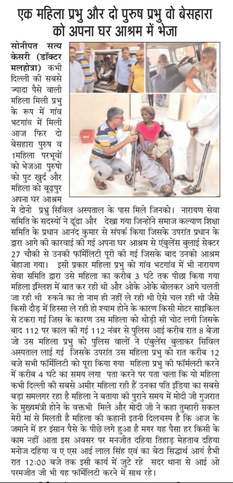 मंदबुद्धि महिला प्रभु को अपना घर आश्रम में पहुंचाया मनजीत तिहाड़ा और सामाजिक सहयोगियों ने