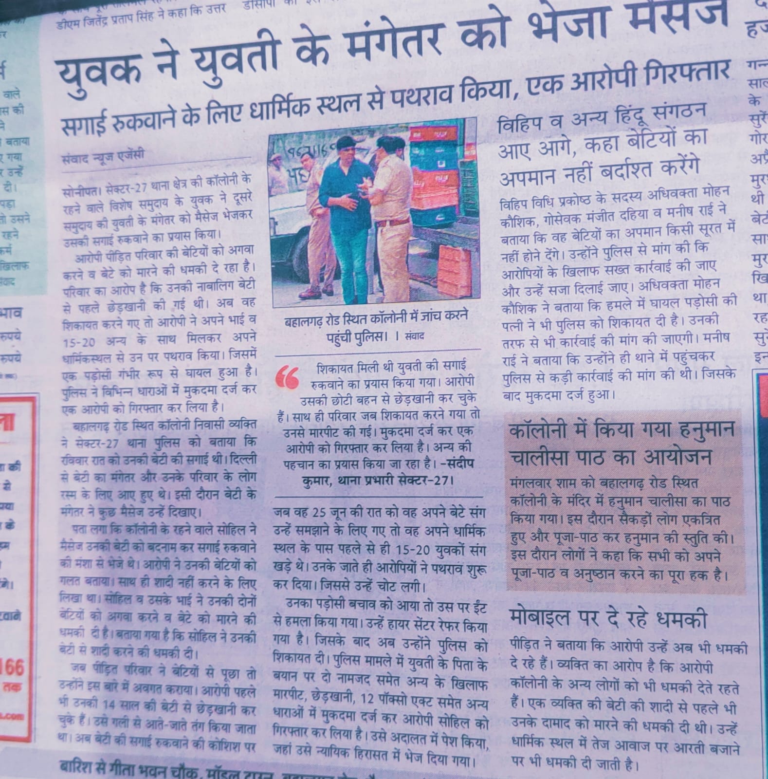 हिन्दू बेटियों को प्रताडित नहीं होने देंगे मनजीत तिहाड़ा के नेतृत्व में हिन्दु संगठन आए सुरक्षा की मांग और आरोपियों पर कानूनी कार्रवाई के लिए