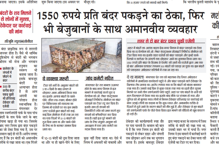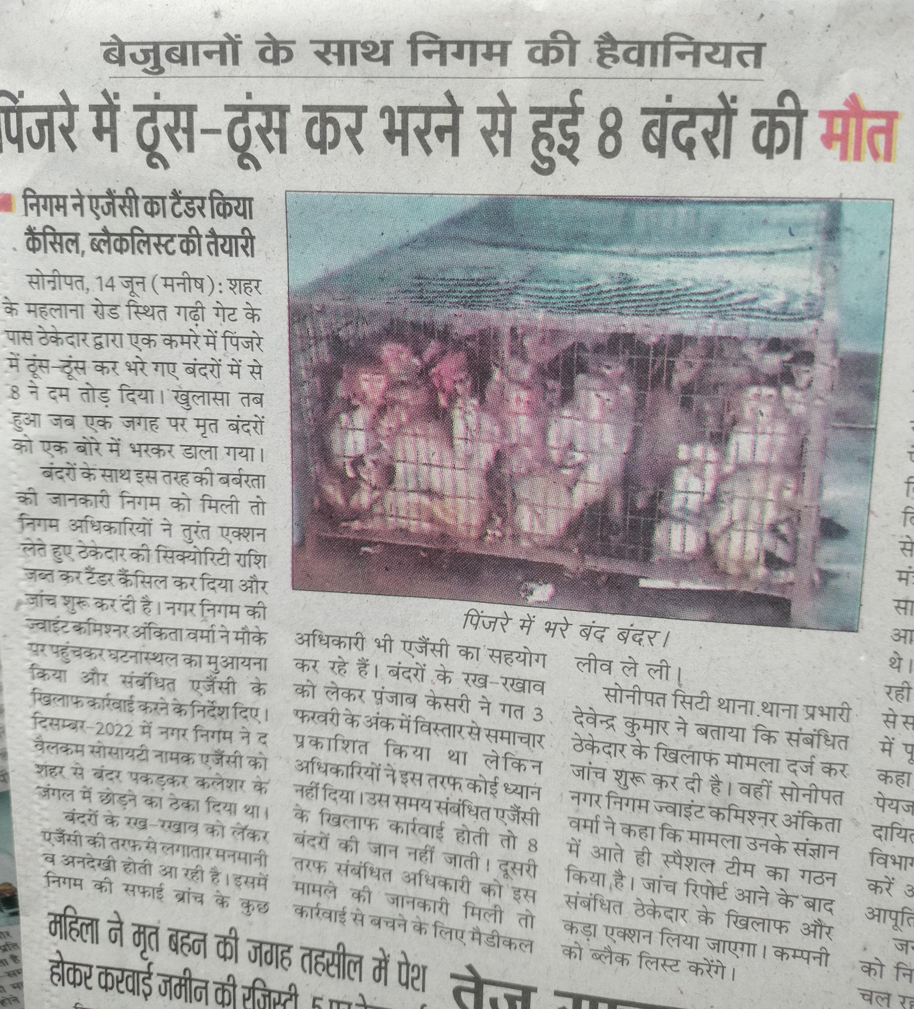 पिंजरों में ठूंस ठूंस कर वानर भरने पर 8 वानरों की हुयी मौत, जान बचाने को मनजीत तिहाड़ा और हिन्दु संगठन आए आगे