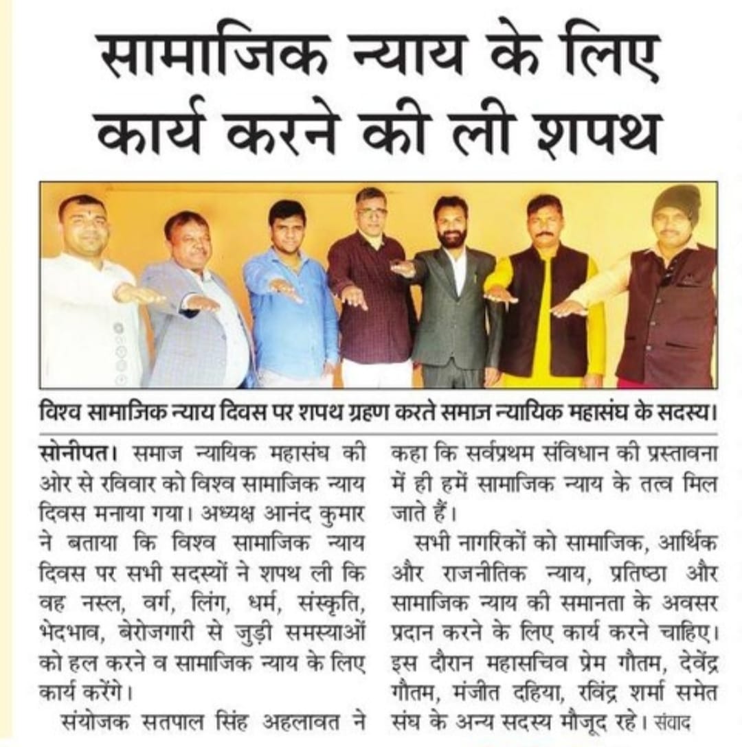 सामजिक न्याय के लिए कार्य करने के लिए शपथ ग्रहण की मनजीत तिहाड़ा और संगठन के साथियों ने