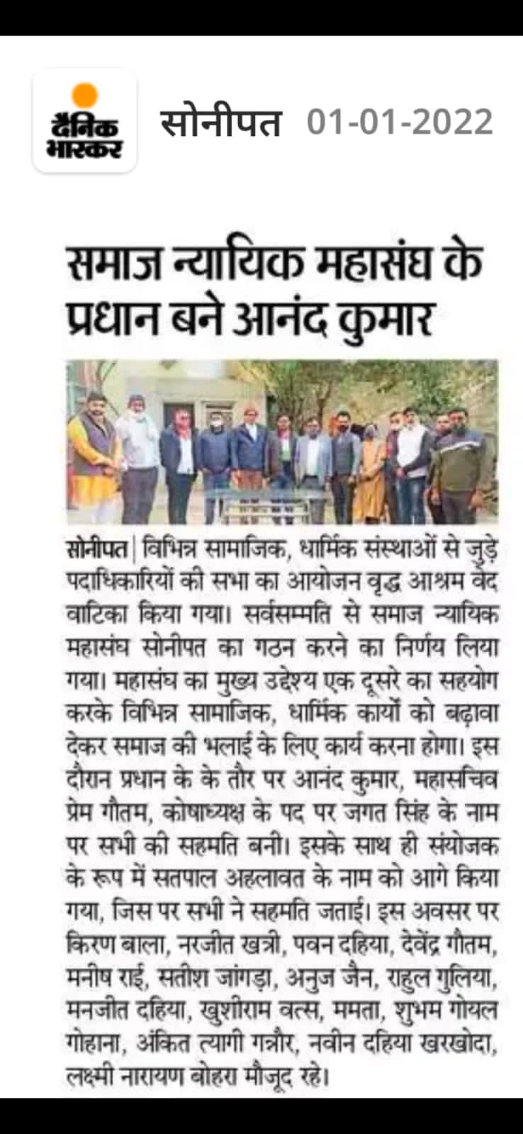 मनजीत तिहाड़ा बने समाज न्यायिक महासंघ के सदस्य